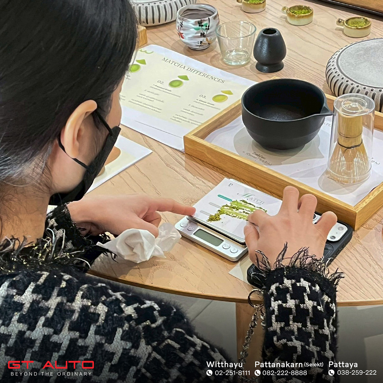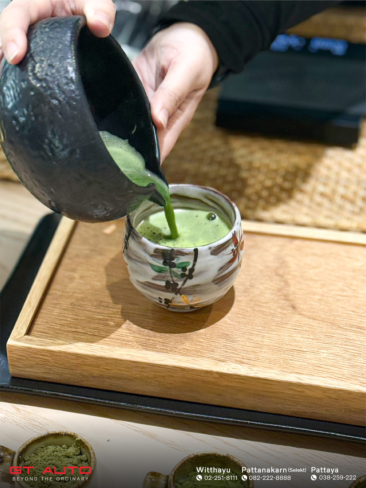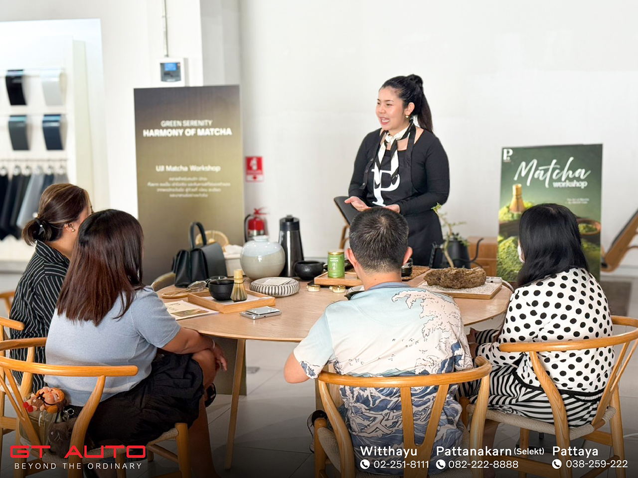เพื่อเติมเต็มประสบการณ์การใช้ชีวิตอย่างมีสติ GT Auto ได้จัดกิจกรรม Uji Matcha Workshop คลาสพิเศษสำหรับผู้ที่หลงใหลในศิลปะการชงมัทฉะแบบญี่ปุ่น เรียนรู้จังหวะ ความนิ่ง และความตั้งใจในทุกขั้นตอน ท่ามกลางบรรยากาศ Zen Garden ที่ออกแบบมาเพื่อให้ใจได้พักไปพร้อมกับรสชาติของชา