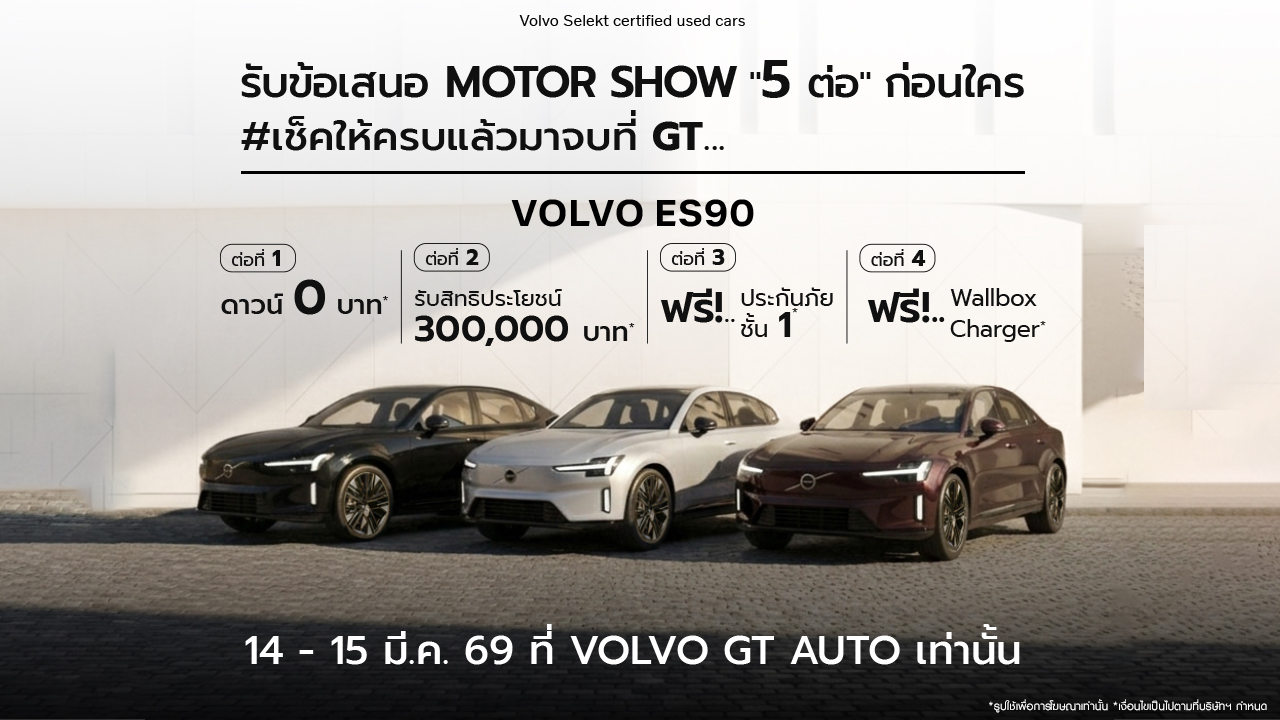 #เช็คให้ครบแล้วมาจบที่GT GT Auto #ให้คุณมากกว่าใคร มอบ ข้อเสนอพิเศษ Motor Show “5 ต่อ” ก่อนใคร สำหรับรถยนต์ Volvo ES90 …